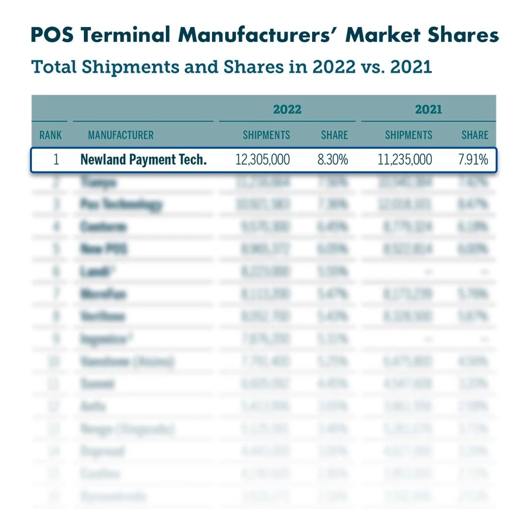 According to the Nilson Report, Newland became the world’s No. 1 POS terminal supplier by shipment volume