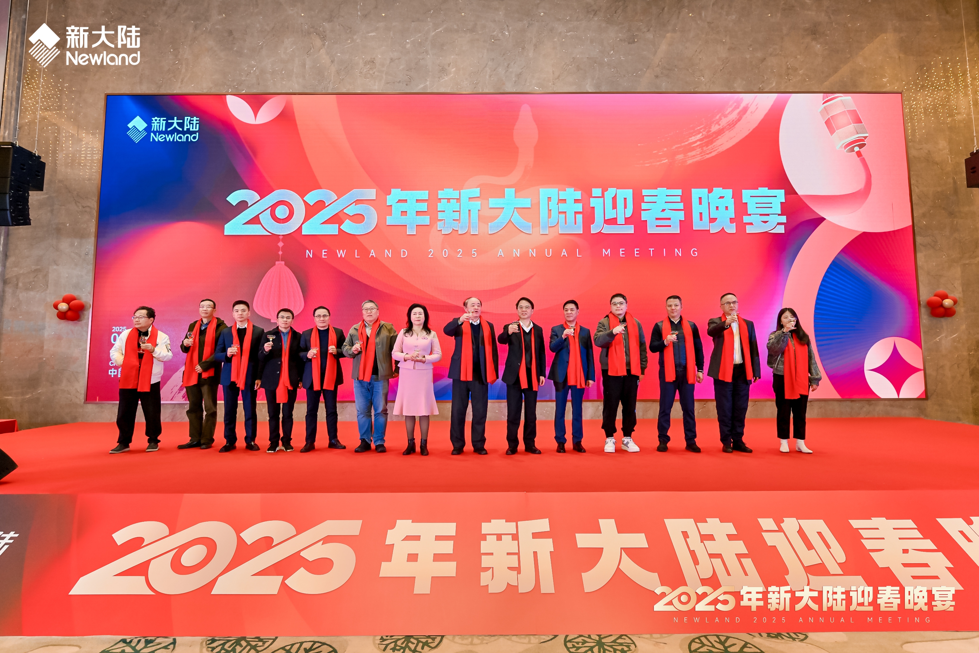 胡钢董事长携在主宾席落座的领导嘉宾共同上台,祝酒开宴,为新一年的美好祝愿举杯。