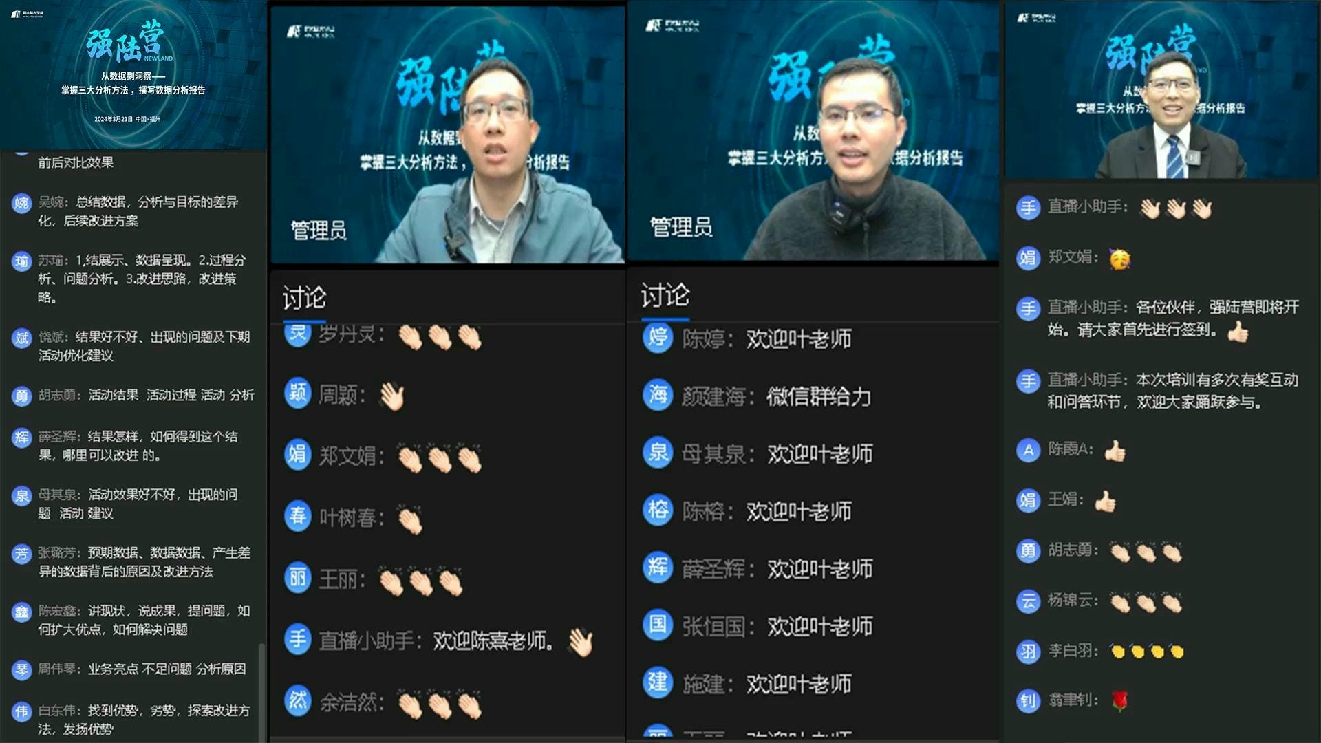 为了提升员工的数据分析能力,挖掘数据中的潜在价值,更深入地掌握数据分析技能,为业务决策提供更加精准的支持,实现数据驱动业务的目标。3月21日,集团人力资源部特别邀请米兰·(milan)大学堂内部讲师叶欣杰、陈熹,通过线上直播学习和交流互动的形式,旨在通过实战教学,让学员们快速掌握三种数据统计分析工具,并学会撰写高质量的数据分析报告。此次培训吸引了集团总部及各经营单位的研发与产品人员共计344人参与报名。培训当天,互动热烈。