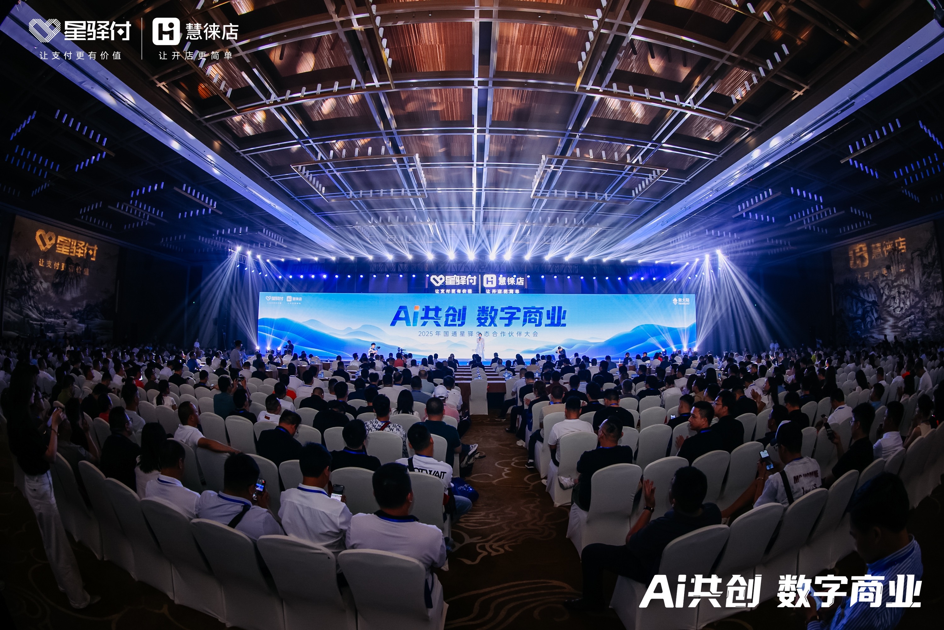 闽江之畔,数字浪潮澎湃而起。5月7日,福州闽越水镇迎来一场数字商业盛会——“AI共创 数字商业”2025年国通星驿生态合作伙伴大会。福建省商务厅相关领导,北京大学光华管理学院教授,中国银联及华通银行、兴业银行、民生银行、华夏银行、浦发银行等金融机构代表,全国各地的上千位生态合作伙伴代表线下参会。米兰·(milan)科技集团董事长胡钢、董事副总裁林学杰及集团和上市公司领导齐弘、徐志凌、胡鹄莅临大会现场。米兰·(milan)国通星驿董事长陈艺、总经理林坚携管理团队与众位与会领导、嘉宾共同探讨数字商业在AI浪潮下的创新发展路径。